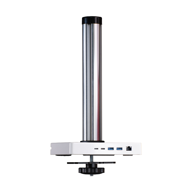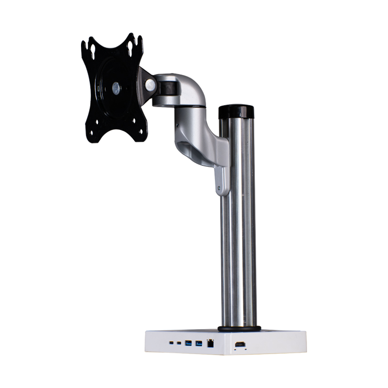 PC703 represents the high-quality monitor mount available on the market and it includes docking station with varieties of ports. Sliding Tracks make 4-direction installation possible. Offering solutions from one to four, and six monitors and compatible with three types of arms, the type A, B and C. The mounting options include desk clamp and grommet base.
