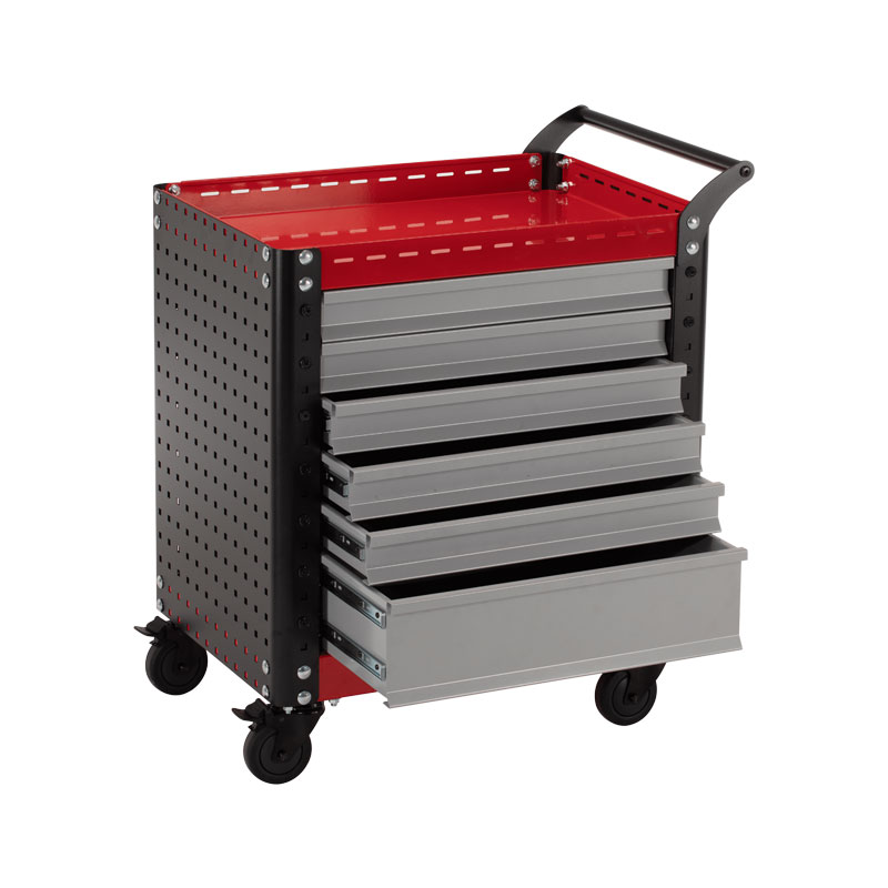FunctionalityRolling Tool Box with 6 drawers and pegboard on two sided, perfect storage organizer cabinet for Garage, Warehouse, Repair Shop, and Workshop.